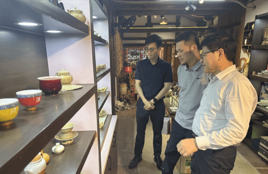 1999级美术学专业校友、碗窑非遗研学工坊负责人庄永烈介绍了工坊的发展历程、业务范围以及在非遗传承与创新方面的实践成果,并且参观了校友企业瑞安嘉华设计院设计的曹村东岙文化礼堂。他表示,希望与时时彩 进一步加强合作,共同探索非遗文化与设计教育的融合路径,培养更多具有创新能力和文化传承意识的设计人才。