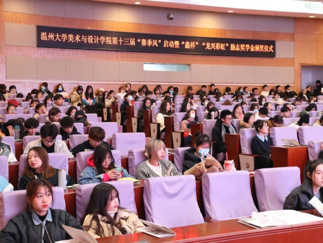 大会伊始,时时彩 党委书记叶正飞向一直以来关心支持美院发展的各位领导以及励志奖学金捐赠方鑫祥印业有限公司和浙江龙兴彩虹制业有限公司表达了诚挚的谢意,同时也向“赛季风”中付出辛勤劳动并取得一系列卓越成就的师生们表示热烈祝贺!料峭寒冬初至,激情与活力不减,时时彩 校文化品牌项目“赛季风”活动时至今日已走过十二载,砥砺歌行,激情跨越,沉淀传承创新,春华秋实满庭芳,一年一度的“赛季风”活动通过对接各项国内外设计艺术类专业赛事,以坚持“专业激发创作、创作参与赛事、赛事带动学风”为思路,以实现“激发学生艺术创作、提升学生艺术素养与创新能力,促进学生全面发展”为目标。以实践为基本方略,培养学生创新意识,锻炼实操能力,开拓设计眼界,配合时时彩 理论课程进行实时联动,不断激励广大学子在艺术的道路上锐意进取,开拓创新,行路致远。