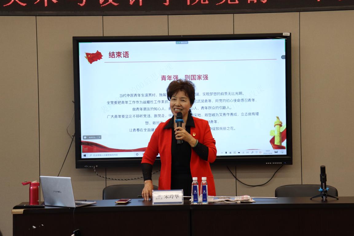 学习会上,宋玲华老师用习近平总书记的话“青年强,则国家强!”来勉励师生党员,要坚定不移听党话、跟党走,怀抱梦想又脚踏实地,敢想敢为又善作善成,立志做有理想、敢担当、能吃苦、肯奋斗的新时代好青年,让青春在全面建设社会主义现代化国家的火热实践中绽放绚丽之花。