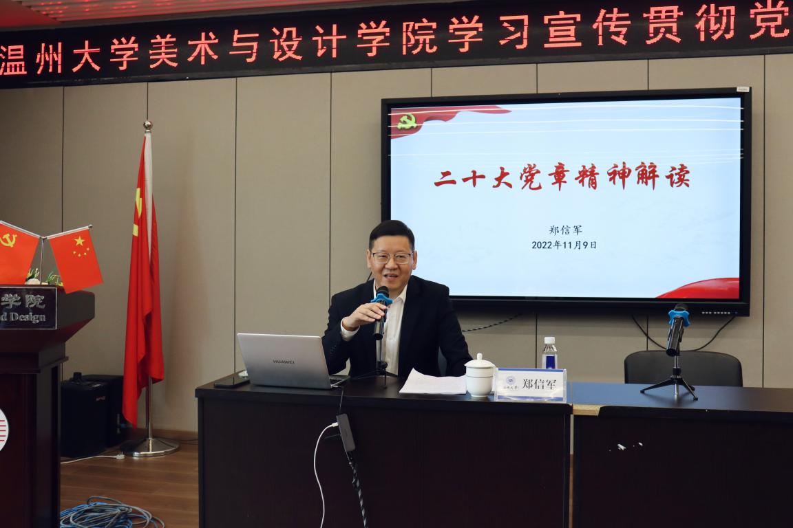 为深入学习宣传贯彻党的二十大精神,引导全院基层党组织和广大师生党员干部围绕全面学习、全面把握、全面落实的要求,深入开展“六学六进六争先”学习实践活动。11月9日下午,时时彩 党委组织召开党的二十大精神理论学习会,学习会邀请时时彩 党委委员、组织部长郑信军作《党的二十大精神解读》专题党课。会议由时时彩 党委书记叶正飞主持,时时彩 全体教职工、学生党员代表参加了学习会。