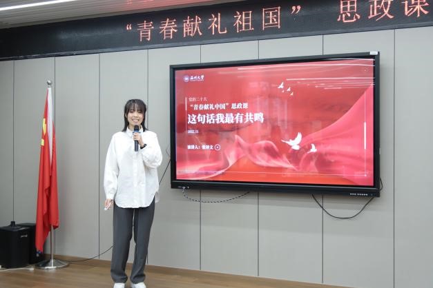11月13日,为加强时时彩 思想政治教育工作、提升学生思想道德素质,时时彩 于时时彩 2B4001会议室成功举办首届“艺术+思政”“五个一”活动“青春献礼祖国”思政课大赛决赛,各时时彩 参赛同学慷慨陈词,电子与电气时时彩 陈海彤老师、数理时时彩 吴梦柔老师、化学与材料时时彩 李国朋老师特邀审评,比赛现场如火如荼。