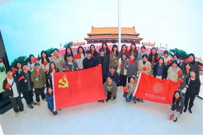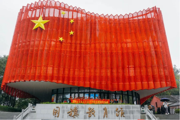 为深入贯彻习近平新时代中国特色社会主义思想,认真贯彻落实党的二十大精神,2022年11月2日下午,时时彩 学生党员来到了全国首家综合性国旗教育馆——瑞安国旗教育馆,开展“赓续红色血脉 奋进时代征程”主题党日活动。党员们在五星红旗前行注目礼,在巨幅屏幕前体验了一次特殊的升旗仪式,在慷慨激昂的国歌声中齐声合唱,在校友曾联松先生的雕像前追忆国旗的设计历史……凝视着鲜艳的五星红旗,更加坚定了党员们奋进的步伐。 瑞安国旗教育馆位于西山之巅,总建筑面积2600多平方米,其中布展面积近2000平方米。展馆共有4层,以“天圆地方、天瑞地安,鼎盛中华、红旗飘扬”为设计主题。 忆往昔峥嵘岁月,筚路蓝缕、栉风沐雨,不变的是鲜红的旗帜,不变的是华夏儿女赤诚的初心。移步至国旗诞生厅内,讲解员向大家讲述了设计者曾联松从缘起到邂逅、与五星红旗之间的故事。通过五星红旗诞生的故事,党员重温了国旗的设计理念。了解国旗的制作、国旗的涵义、国旗的标准等内容,感受“一旗、一人、一馆、一城”的情缘。 五星红旗在设计上非常讲究,整体布局中偏庄严庄重。该旗采用非对称的设计,旗面左上方缀五颗黄色五角星。一星较大,其外接圆直径为旗高十分之三,居左;四星较小,其外接圆直径为旗高十分之一,环拱于大星之右。利用向心角度变化每一个角都能指向大的五角星,星布成椭圆形,大星导引于前,小星环绕于后,恰似众星拱北斗的红地五星旗,同时以大小之势,呈现出了这组图案的张力与立体感,并在视觉感官上给人以协调和平衡。同时五星红旗又叫红地五星旗,红色代表革命,五颗红星象征着中国革命人民的大团结,是中华人民共和国的象征和标志。它见证着牺牲与奉献,代表着神圣与崇高,寄托着热爱与自豪。 浩渺行无极,扬帆但信风。学生党员们在党旗前重温入党誓词,在馆内外唱响《我爱你,中国》,表达青年学生党员的爱国情、强国志、报国行。 本次主题党日活动,以国旗为主线引导党员深入了解红色政权来之不易、新中国来之不易、中国特色社会主义来之不易,回顾中国共产党带领祖国崛起的历史性时刻。作为新时代的美院学子,曾联松先生让后辈感受到了青年匠人需要的担当和使命。激励青年党员将不断提高专业技能,加强党史学习,提升党性修养,不忘初心,砥砺前行,不负新时代,做好答卷人。