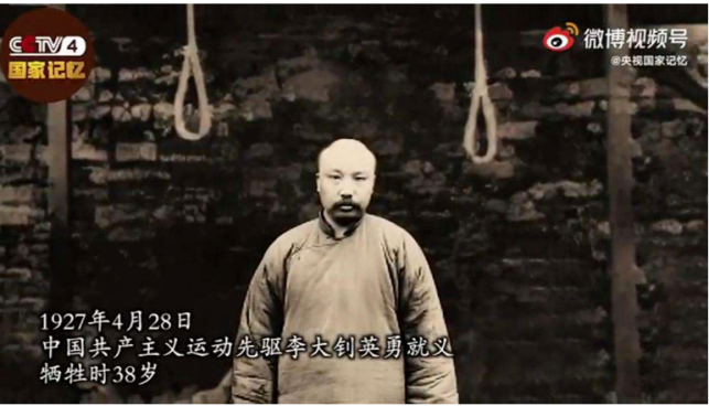 1927年4月6日,李大钊同志在北京被捕入狱。他受尽各种严刑拷问,始终坚守信仰、初心不改、坚贞不屈、大义凛然。同年4月28日,李大钊同志惨遭反动军阀绞杀,牺牲时年仅38岁。