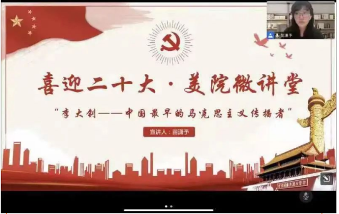 这一次以线上的形式,参加了“喜迎党的二十大”主题的微讲堂,主要介绍了李大钊同志是中国最早的马克思主义者和共产主义者,是中国共产党的主要创始人之一。他对中国人民的解放事业,对马克思主义的信仰和无产阶级的革命前途无限忠诚。他更是一位令人敬佩的大英雄。当侩子手把绞绳套他脖子上的时候,面对死神,他不但没有畏惧,慷慨激昂地说:共产主义事业已经培养了很多同志,如同红花的种子,散遍各地。我深信共产主义在中国、在世界,必然得到最终的胜利。他牺牲的是那么悲壮,那么坦然。他大无畏的献身精神令我深感敬佩。他是真正的为人民而生,为人民而死的大英雄,我们应该永远记住他!这就是李大钊,一位活在我们心目中的英雄,一位在中国历史上永远璀璨的明珠。