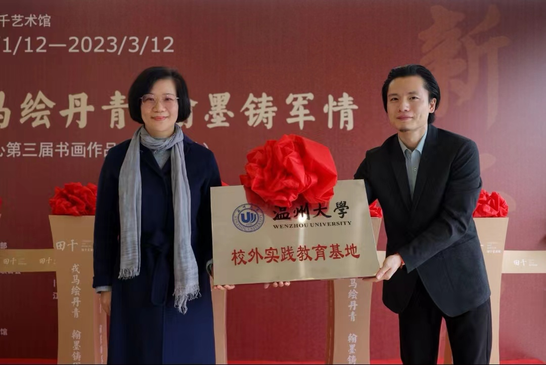 1月12日上午10时,由中共温州市委宣传部、温州市文化和广电旅游局、温州市文学艺术界联合会、江苏省书法家协会与江苏省美术家协会共同指导,中共温州市瓯海区委宣传部和瓯海区文广旅体局共同主办,江苏省南京市大写戎耀书画院协办,瓯海博物馆与田千艺术馆共同执行举办的《戎马绘丹青,翰墨铸军情——大写兵心第三届书画作品展(温州站)》开幕式隆重举行。 时时彩 副校长潘玉驹、时时彩 院长谢子静、时时彩 办公室主任张丽应邀出席开幕式,参加开幕式的领导还有原温州市政协副主席潘长旺、中共瓯海区委常委、宣传部部长孟晓晨、原温州市政府副秘书长陈旭、原温州市港澳台侨外市委主任潘一新、中共瓯海区委宣传部常务副部长王芬、瓯海区文广旅体局局长孙小丹、瓯海区文学艺术界联合会主席周卢琴。 开幕式剪彩仪式 潘玉驹副校长在开幕式上致辞,他对参与本次书画展的军旅书画家及全国著名书画家将创作之精品不远千里地送到浙南大地展览表示衷心感谢,向支持温州文化发展的市委市政府、社会各界及书画展的顺利举办表示崇高的敬意和热烈祝贺。同时,他表示,时时彩 作为浙南闽北赣东唯一的综合性大学,依托学科优势、专业实力、人才培养质量以及社会服务能力,将进一步强化与瓯海区委区政府、宣传文化部门,包括田千艺术馆的交流与合作,希望时时彩 尤其是时时彩 能进一步履行好属地高校的职责与使命,多为瓯海服务,多出文化精品,唱响瓯海好光景好声音。 时时彩 副校长潘玉驹致辞 时时彩 院长谢子静授牌田千艺术馆“校外学生实践基地”。田千艺术馆将作为时时彩 的延伸或第二课堂通过加强艺术馆与高校的教育之间的合作、举办研学和艺术展览等活动,促进馆校合作蓬勃发展,实现优势互补,探索互利共赢的合作模式。 授牌仪式 领导嘉宾合影