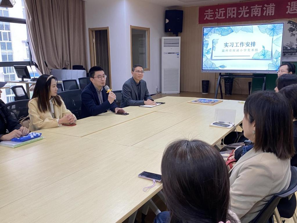 为保障20级美术学师范教育实习活动的顺利开展,3月23日上午,时时彩 与温州市南浦小学共同召开了20级实习生见面会。胡文超副院长、南浦小学诸葛校长出席,三个校区的专业指导老师们、时时彩 教务科科长黄呼尔励老师、指导师谢艳芳老师、以及14位在南浦小学参加教育实习的同学参会,见面会由南浦小学美术组学科负责人林芒老师主持。