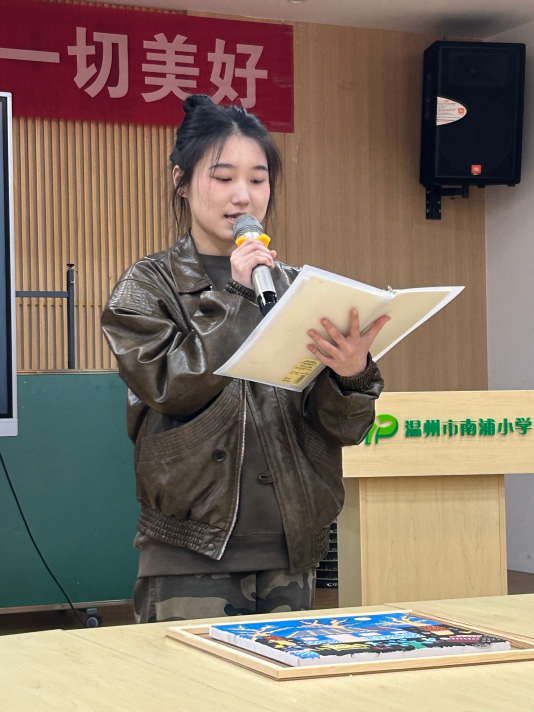 最后是由实习生代表杨铭同学发言,她对给予此次实习实践锻炼机会的南浦小学和在课程准备期间给予帮助的指导老师们表达了真挚的感谢。并承诺在校期间会认真地向各位老师学习,工作负责,对学生关心爱护并积极参加时时彩 组织的各项活动,遵守时时彩 的一切规章制度,严格律己。