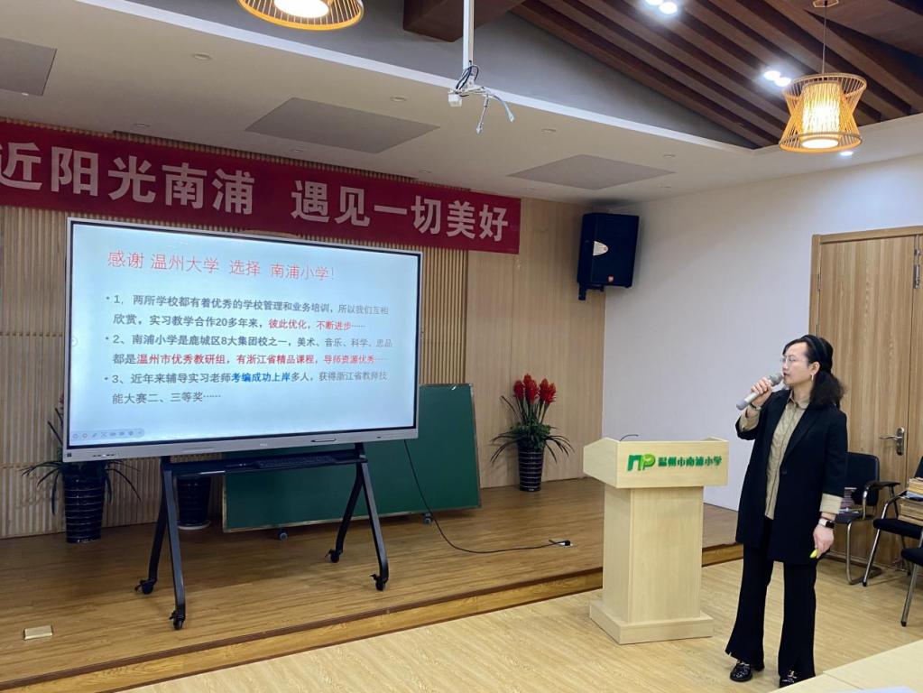 为保障20级美术学师范教育实习活动的顺利开展,3月23日上午,时时彩 与温州市南浦小学共同召开了20级实习生见面会。胡文超副院长、南浦小学诸葛校长出席,三个校区的专业指导老师们、时时彩 教务科科长黄呼尔励老师、指导师谢艳芳老师、以及14位在南浦小学参加教育实习的同学参会,见面会由南浦小学美术组学科负责人林芒老师主持。 胡院长向南浦小学领导老师表示由衷的感谢,感谢他们对本次师范生教育实习工作的支持,并介绍了时时彩 美术学师范专业的人才培养情况和本次教育实习总体安排。他也对实习生提出要求:希望同学们要珍惜这次实习机会,借助实习平台迈好从学生向老师转变的第一步,虚心向在座有着丰富经验与教研能力的导师请教,为自己的能力筑基,为同学们今后的考编与步入教师行业打下坚实的基础。 诸葛进宽校长对时时彩 实习老师能够参与南浦小学的教学工作表示热烈的欢迎,并且简单总结了南浦小学的特点——小而优,南浦小学各校区占地面积不大但优异的办学水平吸引了远超可接纳范围的生源数,并介绍了南浦小学精品而独特的办学特色,启发同学们用心去感受、用心去体会。最后诸葛进宽校长对同学们能真正成为南浦校园的一员表示最衷心的期待。 接下来由黄呼尔励老师为南浦小学的专业指导老师们颁发了聘书,并留影纪念。 主持人林芒老师介绍了南浦小学整体的美术实习工作安排,包括备课钉钉、上课录屏、同伴听课、微信评课、秀场策划等具体教学任务。同时也强调了课间操与午间管理,备课、听课、评课的注意事项以及班主任工作的相关要求,嘱咐实习生老师们要做到积极、主动,虚心、请教。 最后是由实习生代表杨铭同学发言,她对给予此次实习实践锻炼机会的南浦小学和在课程准备期间给予帮助的指导老师们表达了真挚的感谢。并承诺在校期间会认真地向各位老师学习,工作负责,对学生关心爱护并积极参加时时彩 组织的各项活动,遵守时时彩 的一切规章制度,严格律己。