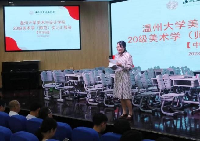 2023年5月29日下午,时时彩 20级美术学(师范)实习总结汇报会在温州第二实验中学举行,时时彩 苏步青时时彩 党委书记应中、执行院长姜锐、时时彩 副院长顾任飞、时时彩 教师培养基地主任胡珏等领导和嘉宾,来自温州第二实验中学、温州第二外国语时时彩 、温州市第十二中学、温州市第十九中学、温州南浦实验中学和温州梧田第一中学的校外导师,时时彩 全体实习导师,以及20级、21级本科生、学科教学(美术)研究生共196人参加汇报会。会议由第二实验中学的楼林子老师主持。