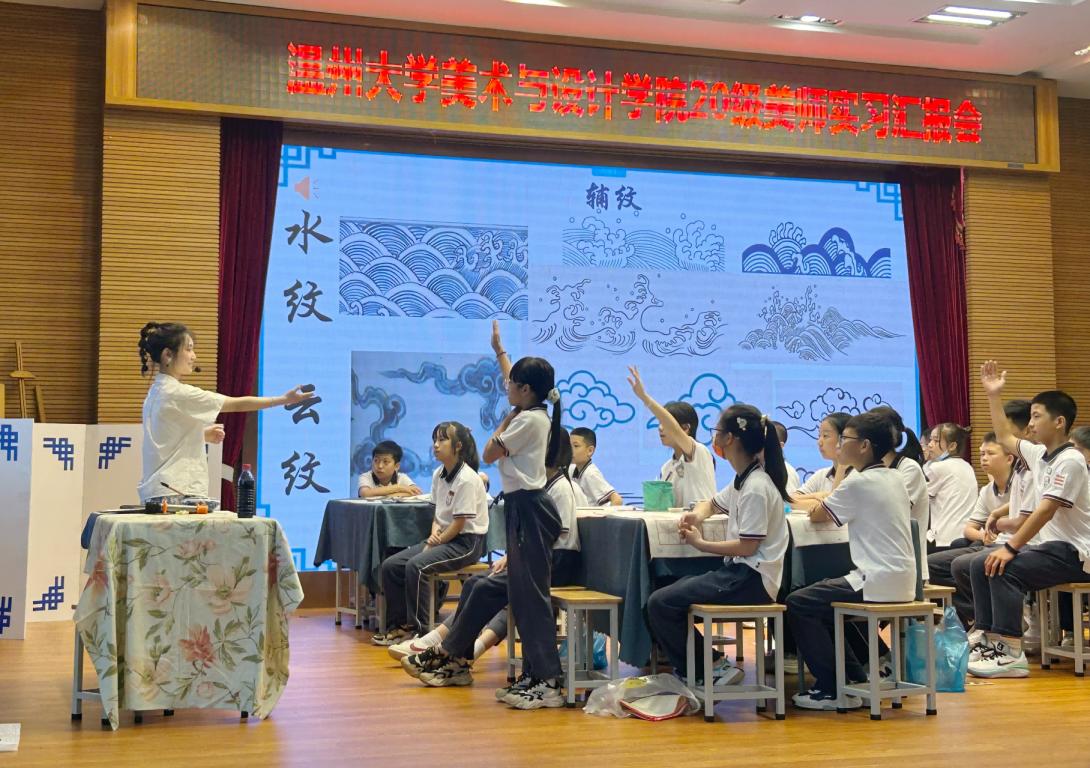 紧张又充实的实习生活已经落下帷幕,在近两个月的时间里,20级美师的同学们经历了从学生到教师的角色转换,初尝了身为一名教师的酸甜苦辣,也渐渐领悟了教书育人的真正含义。为了认真总结教育实习过程中的经验和不足,实习生们迎来了隆重的小学场实习总结汇报会。 6月8日,时时彩 美术学(师范)专业2020级教育实习汇报会·小学场在马鞍池小学报告厅准时召开。时时彩 副院长胡文超、温州市马鞍池小时时彩 长林大康、美院实习导师胡建南、黄良珽、楼晓勉、谢艳芳、陈昭庭、王晶等老师,以及籀园小学、马鞍池小学、南浦小学各校区的指导老师,2020级美师专业的全体本科生、研究生出席了本次大会,大会由20级美师2班黄章铭、姚子昂主持。 嘉宾发言 会议伊始,胡文超副院长对嘉宾和指导老师们的到来表示热烈的欢迎,对同学们成功地完成了两个月的实习任务表示了欣喜和祝贺。接着林大康校长指出在这两个月的实习中,见证了同学们的收获与成长,也祝贺同学们在实习中有很大的收获。 实习生代表发言 随后,由实习生代表王浩宇进行汇报总结,他带来了不同校区的同学们精心制作的实习视频,生动有趣的画面一下子就引起了同学们的兴趣。他分享了不同校区中实习经历的点滴,表达了对实习指导师们辛勤指导的感激,以及本次实习对自己重大的意义。 各校区实习汇报 接下来便进入了实习的展示汇报环节,每所实习校都为我们带来了精彩纷呈的课堂。第一节课由马鞍池小学的实习生代表张子璇带来三年级上册《中国彩陶》。课程从感受两种不同的陶瓶:看一看,摸一摸,对比两种瓶子的不同作为导入,接着设置复原彩陶碎片活动,一起看看7000多年前的陶器,从器形、花纹等方面,引导学生更进一步地了解彩陶文化。 第二节课由籀园小学的实习生代表郭一瑄带来三年级下册的《门票设计》。课堂导入用一张照片来引出门票,引起学生们的兴趣。中间过程让学生们进行连一连小游戏,增加课堂的趣味性。再让学生做一位小小设计师,亲手制作属于自己的门票版式,充分挖掘学生的自主设计创意! 第三节课由南浦小学西校区的实习生代表赵梦洁带来六年级上册的《金银器》。课程开始由南浦小学的实习生们为大家带来了一段情景片段,以此展开金银器的课题,一起去感受传统金银器的独特美感和华丽。 第四节课由南浦小学南校区的实习生代表杨铭带来六年级下册《青花瓷》。古老的文明赋予了青花瓷千年的神韵,彰显出传统文化的博大与精深。本课从周杰伦《青花瓷》导入,制造优美的意境进行揭题。引导同学们跟着歌曲进入青花瓷的艺术之旅,从了解青花瓷的发展史开始,让学生在探究青花瓷的历史过程中学习青花瓷纹饰特点、寓意表达、器型样式,从而获得对青花瓷的审美认知和对历朝历代的文化理解。 名师评课 汇报课结束之后,胡建南老师 、林大康老师进行了现场评课,两位老师对各位实习老师的汇报表示肯定,同时也提出了需要改进的地方。 留影合念 实习是一次将所学理论知识转化为实践的机会,通过这段实习经历大家都受益匪浅,实习虽已落下帷幕,但祝愿20级美师全体同学们都能千山万水,不负理想,不忘初心,拨云见日,未来可期! 本次与实习汇报会一同进行的还有优秀实习作业展,展示了20级美师同学在实习过程中的优秀板书、学生作品,展览布置有新意,呈现了优质的教学成果!