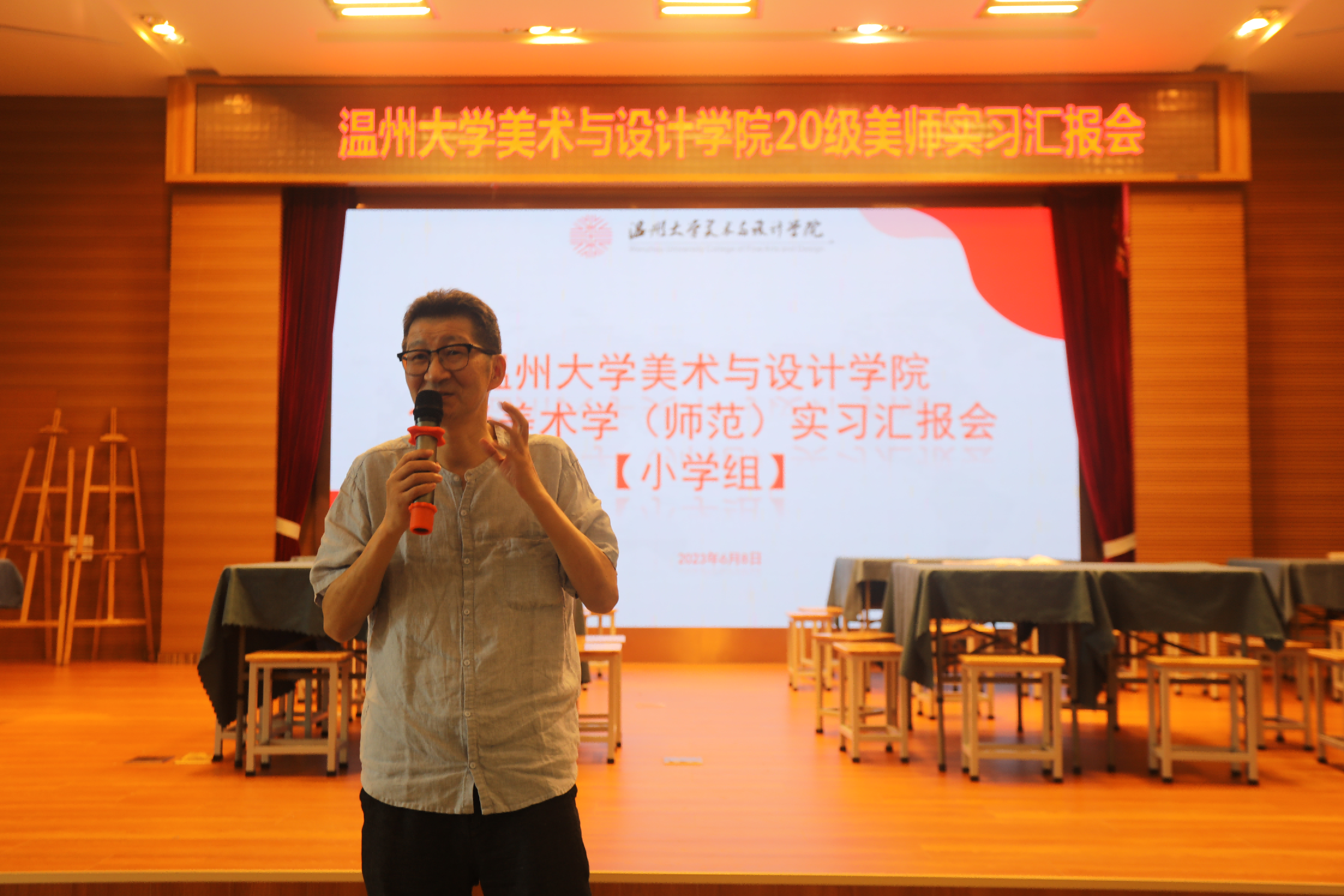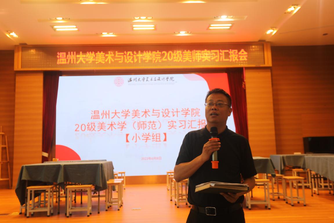6月8日,时时彩 美术学(师范)专业2020级教育实习汇报会·小学场在马鞍池小学报告厅准时召开。时时彩 副院长胡文超、温州市马鞍池小时时彩 长林大康、美院实习导师胡建南、黄良珽、楼晓勉、谢艳芳、陈昭庭、王晶等老师,以及籀园小学、马鞍池小学、南浦小学各校区的指导老师,2020级美师专业的全体本科生、研究生出席了本次大会,大会由20级美师2班黄章铭、姚子昂主持。
