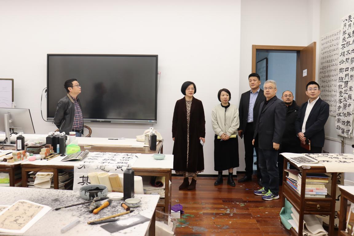 会后,与会领导一行前往书法专业教室、书法特色文化空间,调研书法学专业学生学习情况并参观正在展出的“书法学专业学生阶段性成果展”,对书法专业空间的精心布置、文化氛围及“教、学、研、创、展、化(化人)”一体化的建设思路给予了充分的肯定。