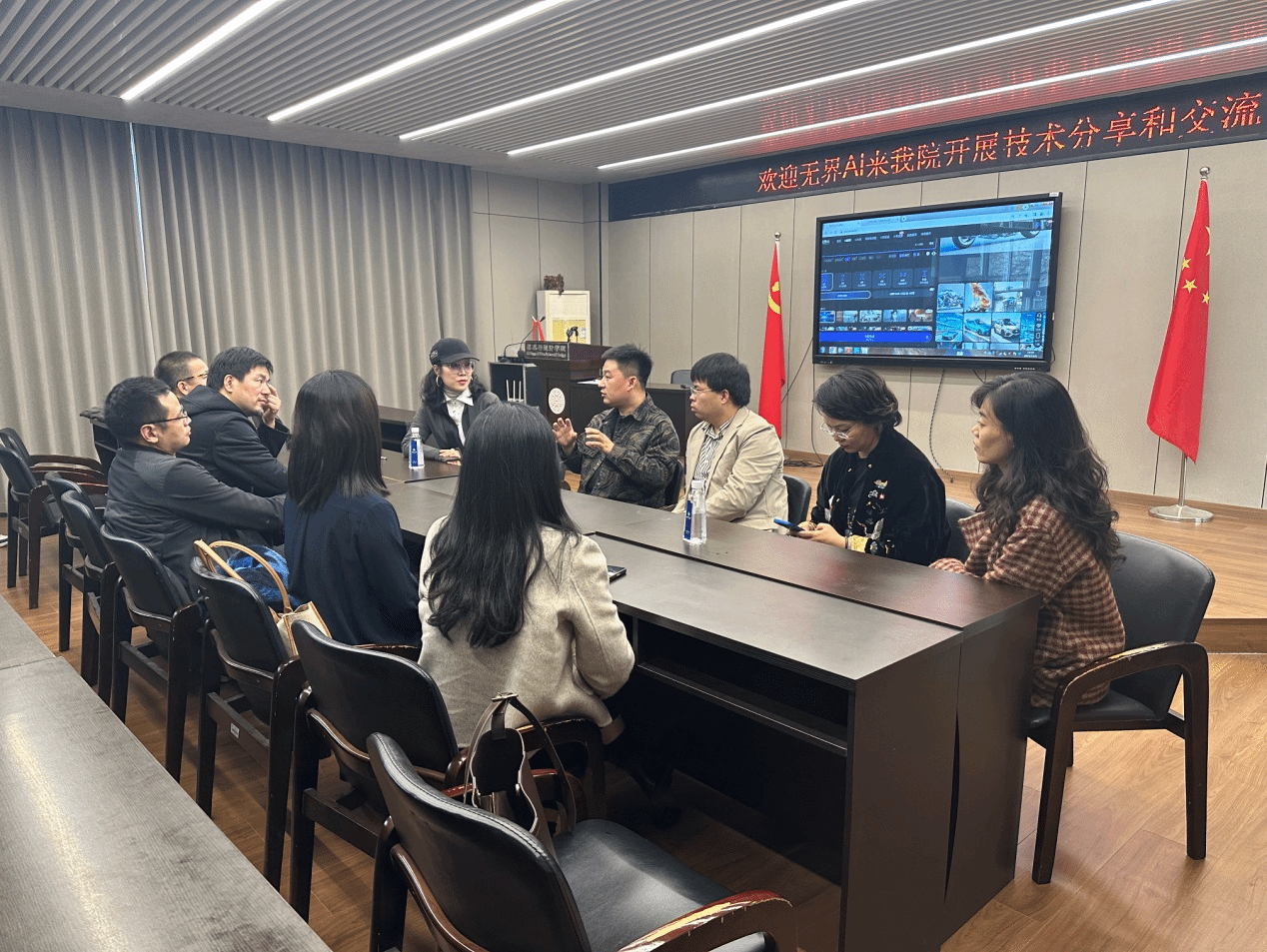 后半场,双方开展了产教融合座谈会,就AI技术如何赋能教育展开深入探讨。老师们针对AI智能与教学融合的利弊提出了多方位的思考和可行性方案,已结合AI智能教学的几位老师也分享了自己的实战经验和应用作品。
