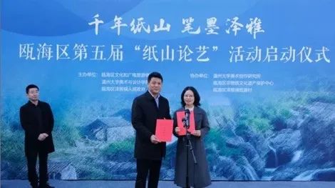 12月27日,在泽雅镇纸源村唐宅举行了“千年纸山,笔墨泽雅”瓯海区第五届“纸山论艺”启动仪式。本次活动是由瓯海区文化和广电旅游体育局、时时彩 和泽雅镇联合主办,是一次“非遗+美术”的文化宣传活动,是通过美术创作与艺术展示的形式,来宣传瓯海泽雅千年纸山的传统文化。