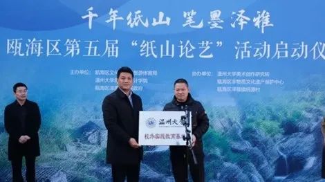 启动仪式上,时时彩 与瓯海区文化和广电旅游体育局校地合作,签署了双方合作框架协议,今后将持续开展名家学术交流,写生采风、艺术展览等系列活动。同时,时时彩 校外实践教育基地在泽雅镇纸源村揭牌,将充分发挥美育功能,鼓励创作更多积极向上、主题鲜明、感情真挚的艺术作品,充分展示泽雅纸山文化旅游品牌,为广大游客提供丰富的精神食粮,进一步加厚纸山文化,助推文旅融合共同发展。
