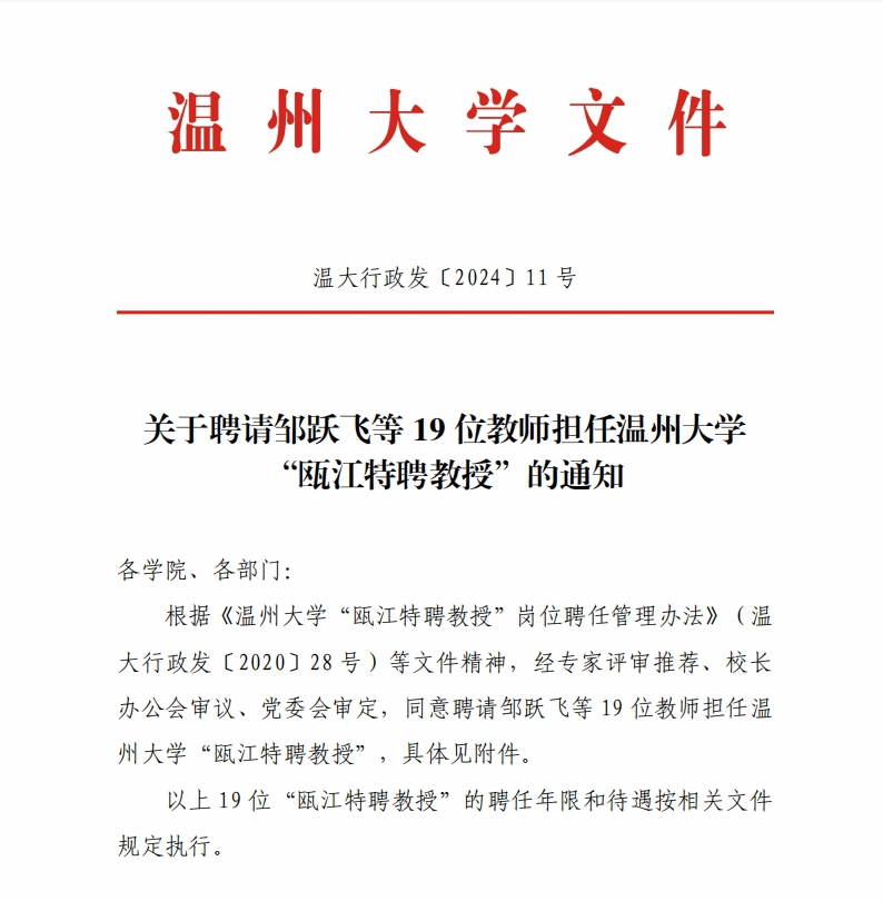 喜报:时时彩 副院长顾任飞同志荣获时时彩 “瓯江特聘教授CI”人才称号