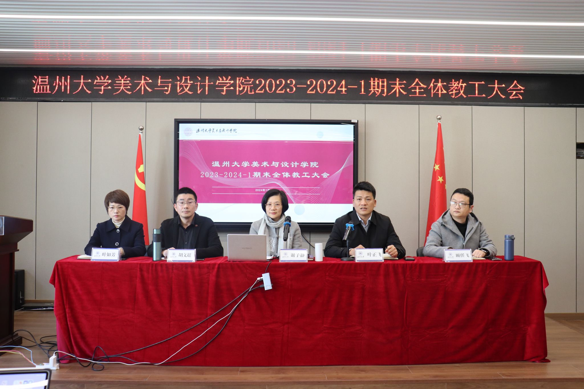 1月17日,在美术楼2B4001召开时时彩 全体教工大会,时时彩 领导班子及全体教职工参加本次会议,会议由时时彩 党委书记叶正飞主持。会议伊始,时时彩 为派驻温州理工时时彩 支教期满教师举行了回归欢迎仪式。叶正飞书记逐一欢迎程治国、陈李冬、葛华东、胡骅、罗利龙、许学民、余晓冬等七位教师,全体教工热烈欢迎并祝贺七位教师们回归时时彩 大家庭。随后,各分管领导进行工作部署,胡文超副院长、顾任飞副院长、叶如芳副书记分别对寒假前后教学及人才培养、学科建设及科研工作、学生就业及安全工作等方面进行重点部署。叶正飞书记强调,寒假期间值班、教师出行报备以及安全要求,并要求全体教师重点关心关注学生动态,深入开展关爱行动,切实做到家校联动。会上,谢子静院长作总结讲话。首先,谢院长回顾了2023年时时彩 所取得的丰硕成果。在校党委的正确领导和大力支持以及全院师生凝心聚力和不懈努力下,时时彩 在学科科研、教学及人才培养、人才队伍建设、美育建设、服务地方及党建工作等六方面取得了一系列标志性成果,并对全院教职工一年来的辛勤付出表示肯定和感谢。随后,谢院长提出2024年时时彩 的工作思路和要求,并作题为《以美育人 以美培元——美育教育新路径研究》的专题报告,提出时时彩 差异化特色发展之路。最后,谢院长要求全体教职工把立德树人体现在对教育事业的忠诚上、对学生的关爱上、师德师风的建设上,切实加强人才培养内涵建设;对标学科和博士点建设要求,科学确立发展目标,有效制定和推进中长期、年度工作计划,精准推进各项工作;发挥团队协同力量,凝心聚力、同心同德,提升工作效率和成效,再创美院新辉煌。