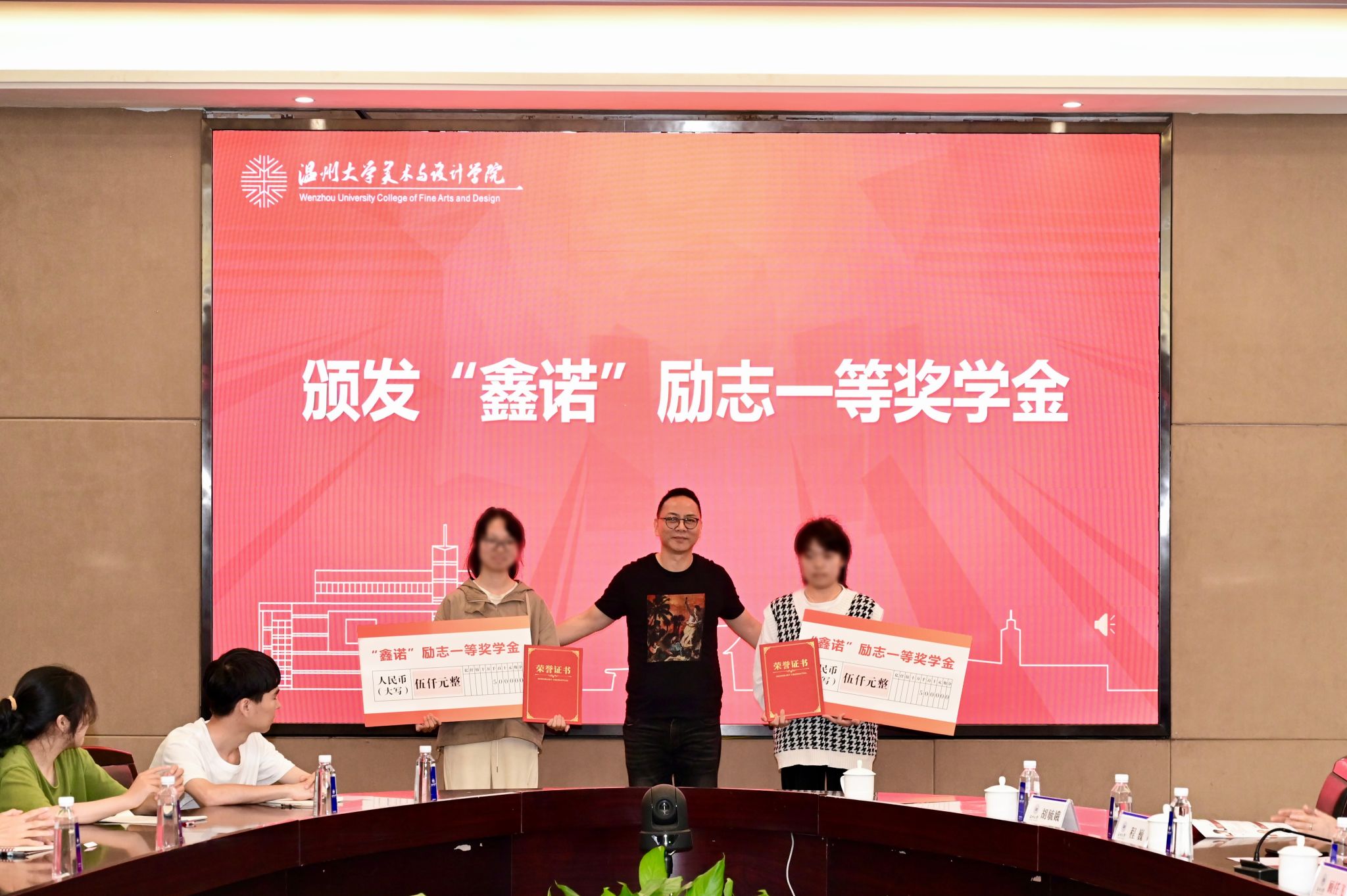 5月18日下午,时时彩 “鑫诺”励志奖学金颁发仪式在岩松堂白鹿厅隆重举行。时时彩 杰出校友、海宁鑫诺服装有限公司董事长刘军,时时彩 优秀校友莫欣,时时彩 党委书记叶正飞以及时时彩 师生代表参加本次颁发仪式。仪式由时时彩 副院长顾任飞主持。