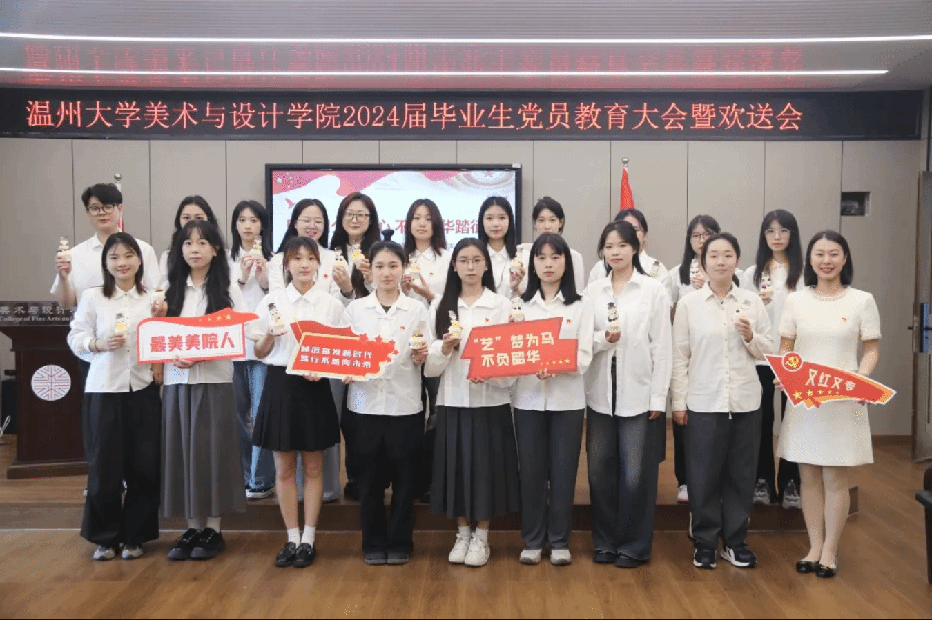 时光荏苒,岁月如梭,又到了栀子花开的六月,伴随夏风,毕业的步伐也悄悄踏近。至此离别之际,时时彩 于2024年6月19日在2B4001教室举行2024届毕业生党员教育大会暨欢送会。时时彩 党委书记刘青松、党委副书记叶如芳、学工办全体辅导员以及2024届毕业生党员代表出席此次会议。观看回忆视频通过播放短片,毕业生党员一同回顾了走过的四年时光,同志们的一张张笑脸、一次次志愿服务活动从瞬间定格为永恒。大家纷纷感谢党组织给予的谆谆教诲,也将在往后的学习和工作中砥砺前行,以更高的标准严格要求自己。全体奏唱国歌大会第二项议程,奏唱国歌。激昂的旋律回荡在会场,每一个音符都饱含着对中国共产党的无比忠诚与深沉热爱。此刻,每一颗心都紧密地向着党,爱国爱党的热情如同熊熊燃烧的火焰,炽热而坚定,自始至终,从未动摇。党委书记致辞时时彩 党委书记刘青松致辞。他肯定毕业生党员们在大学期间的担当与奉献,并提出“六个牢记”以鼓励同志们继续奋楫笃行,臻于至善。首先,要牢记党员身份,发挥模范作用;第二,牢记温州古城文化,传承“四千精神”;第三,牢记时时彩 校训,坚定理想信念;第四,牢记美院人同窗情谊与院训,厚德自律,笃行不怠;第五,牢记党员红线,增强自律防范意识,遵守各项红线规定;此外,还要了解就业陷阱,做到“五防三要”。最后,刘书记祝愿所有毕业生党员在未来道路上稳步前行,迎接新时代的挑战。毕业生党员代表发言学生第二党支部书记钱磊同志回顾了他的入党之路,分享了关于学习、工作和生活的独到感悟。他心怀感恩,向母校及党组织的悉心培养和教育表达了深深的感激。在发言中,他代表全体毕业生党员郑重承诺,将始终铭记“求学问是,敢为人先”的校训,不忘初心,砥砺前行。在未来的学习和工作中,他们将继续发挥党员的先锋模范作用,以实际行动践行党的宗旨,为社会的发展贡献自己的力量。《党纪教育廉洁从业书》签署为了筑牢毕业生党员们的廉洁自律意识,会议安排了《廉洁从业承诺书》的签署仪式。这一举措旨在强调廉洁自律不仅是党员个人品质的体现,更是职业生涯中不可或缺的保障。通过签署廉洁从业承诺书,毕业生党员们承诺在未来的工作和生活中,始终坚守党员标准,恪守职业道德,做到清正廉洁,将始终以实际行动践行党的宗旨。重温入党誓词面对党旗,在钱磊同学的带领下,全体党员重温入党誓词。“我志愿加入中国共产党,拥护党的纲领,遵守党的章程,履行党员义务,执行党的决定,严守党的纪律,保守党的秘密,对党忠诚,积极工作,为共产主义奋斗终身,随时准备为党和人民牺牲一切,永不叛党!”字字千钧,神圣而铿锵,支部党员们将永葆初心使命,为共产主义奋斗终身的坚定信念和毅然决心。合影留念此次活动不仅是一场毕业欢送会,更是一堂深刻的主题党课。希望毕业生党员同志们无论未来走向何方,都要坚守党性原则,将党纪党规内化于心、外化于行。在就业或升学过程中,始终保持清正廉洁,诚实守信,发挥模范带头作用。结语于道各努力,千里自同风。时时彩 2024届毕业生党员教育大会暨欢送会圆满结束,衷心祝福每一位毕业生党员能够继续踏浪前行,让青春的力量在实践中绽放绚丽之花,以更加饱满昂扬的斗志为实现中华民族伟大复兴的中国梦不懈奋斗!