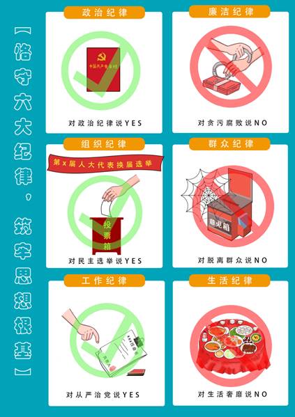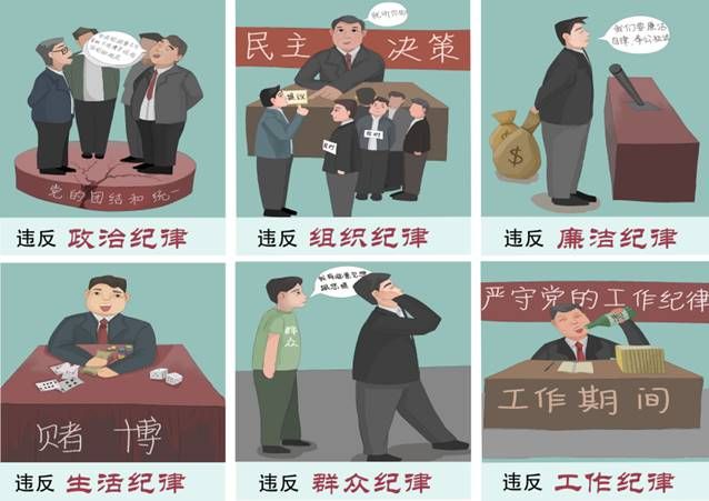 该作品以六幅精心绘制的漫画为载体,深入解读了中国共产党作为以革命理想和铁的纪律组织的马克思主义政党所坚持的六大纪律。