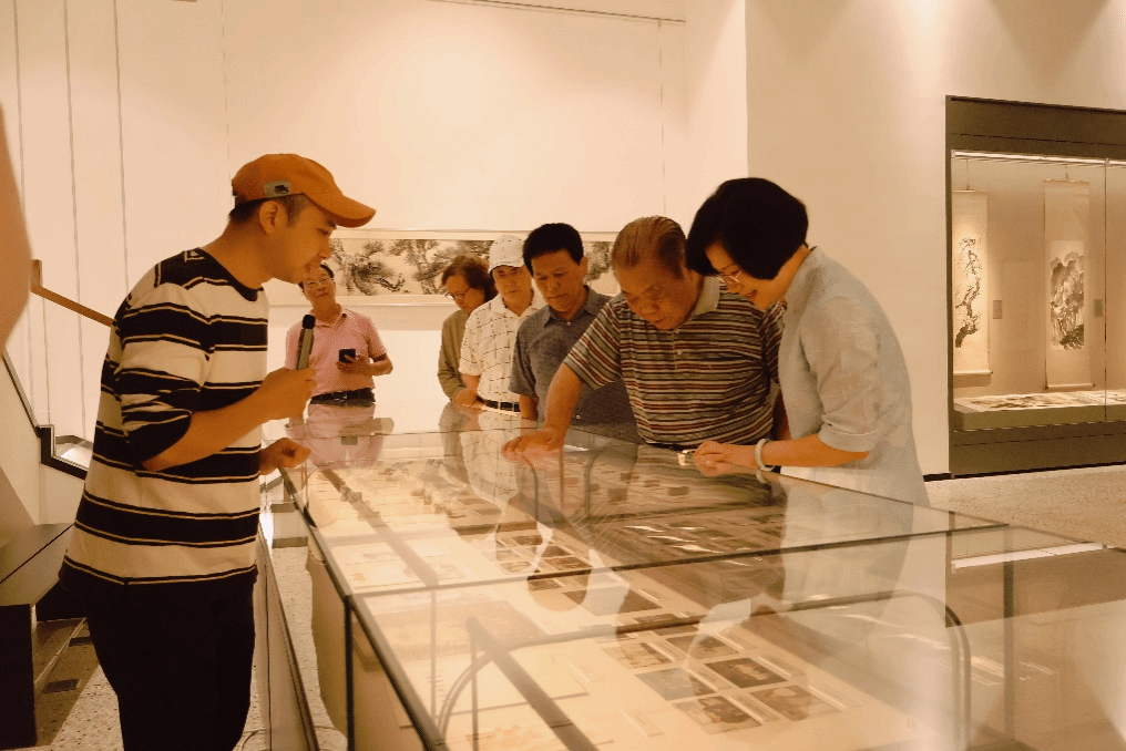 龚心瀚先生一行首先参观了特展馆所展出的黄达聪作品,涵盖其山水、花鸟、人物等题材101件;继而参观了典藏馆所展出的黄达聪师友作品85件,以及师友所赠黄达聪用印14方、文献26件。其中不乏黄宾虹、赵叔孺、王福庵、沈尹默、方介堪、梅兰芳、徐悲鸿、吴湖帆、程十髪、刘旦宅等大批艺术名家的书画印精品。