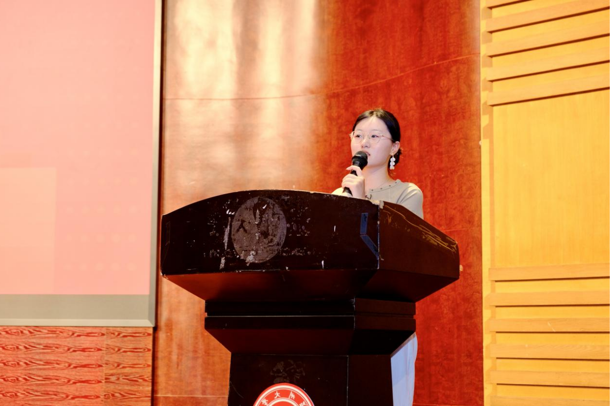 20服工金涵蕾同学代表本科生发言。她分享自己对大学新旅途的期待向往,号召新同学与时代共成长,以青春之我、奋斗之我,为民族复兴铺路搭桥,为祖国建设添砖增瓦,为党和国家事业发展贡献青春力量、展现青春担当。