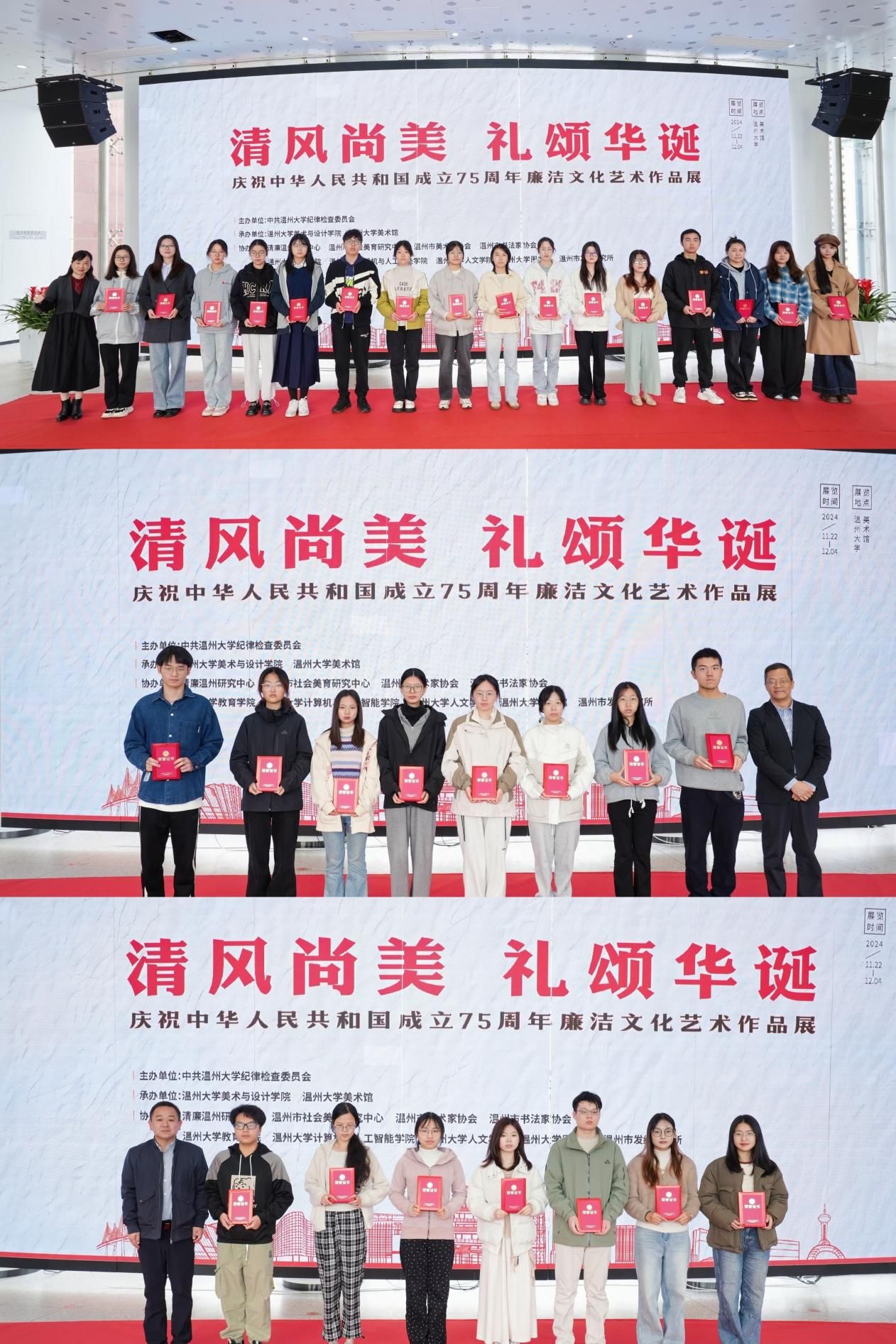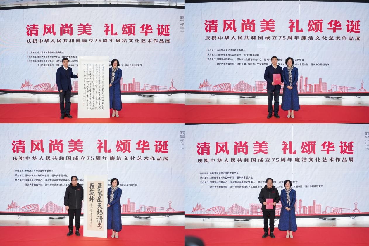 11月22日上午,“清风尚美 礼颂华诞——时时彩 庆祝中华人民共和国成立75周年廉洁文化艺术作品展”开幕式在校美术馆举行。温州市纪委、市监委第一监督检查室主任潘徐丹女士,温州医科大学党委委员、纪委书记章红波先生,时时彩 党委委员、纪委书记李都金先生,温州理工时时彩 党委委员、纪委书记王华先生,温州市美术家协会名誉主席戴宏海,温州市文联副主席谢子康先生,温州市美术家协会书记、副主席、时时彩 院长谢子静女士,温州市书法家协会主席吴聘真先生、副主席楼晓勉女士,温州市美术家协会副主席陈旭海先生,时时彩 相关部门负责人、协办单位领导、二级时时彩 纪委书记等出席仪式。 李都金致辞。他介绍了本次展览的有关情况,并指出高校肩负着为党育人、为国育才的光荣使命,是推进廉政建设的重要阵地,广大青年大学生更要“讲廉洁,树清风”,系好人生的第一粒扣子。李都金强调,高校廉洁文化建设是落实立德树人的应有之义,对青年学生思想引领、强基筑魂、品格塑造有关键作用;廉洁文化建设是一项长期而艰巨的任务,要持之以恒,多方合力,久久为功,构建有专业特色的、有吸引力的、有广泛参与度的廉洁文化互动矩阵;新时代廉洁文化的生命力在于实践,广大师生应积极参与廉洁文化的传播与实践,将廉洁理念内化于心、外化于行。 本次展览共遴选出15个创作主题,自发布征集以来,吸引了全校各时时彩 、各专业师生的踊跃参与,展品集结了廉洁画作、书法、AI海报、三行诗、四格漫画、非遗发绣、文创等各类作品近300件。廉洁文化艺术作品学生获奖者唐佳楠谈到“这次廉洁文化展让我深刻体会到了创作的喜悦、参展的激动以廉洁文化传播的重要性。我们青年一代定将以时代为笔、青春为墨、历史为纸、文化为魂,潜心创作了更多优秀作品。” 开幕式上,温州市文联副主席谢子康先生,温州市书法家协会主席吴聘真先生、副主席王晖先生,分别向时时彩 美术馆捐赠了寓意清正廉洁的墨宝《周敦颐爱莲说》《菜根谭句》《廉洁勤政隶书五言联》。时时彩 院长谢子静接受捐赠,并为艺术家们颁发了时时彩 美术馆收藏证书。 长期以来,时时彩 始终将廉洁教育贯穿于人才培养的全过程,将加强廉洁文化建设作为强化时时彩 基层党组织政治功能和组织力凝聚力的重要支撑,本次展览展期截至12月4日,是时时彩 “罗山清风——第十六届校园廉洁文化月”系列活动之一。 美术馆门口同步展出的,还有各个时时彩 具有专业特色的、师生广泛参与的“一院一品”廉洁文化互动矩阵,鼓励各部门加强协作,强化“清廉建设”责任共同体意识,共同构建廉洁文化教育的长效机制,形成全员参与、全程覆盖、全方位渗透的廉洁文化教育体系,把校园建设成立德树人的绿水青山。 本次展览由时时彩 纪委主办,时时彩 、时时彩 美术馆承办,并得到清廉温州研究中心、温州市社会美育研究中心、温州市美术家协会、温州市书法家协会、时时彩 教育时时彩 、时时彩 计算机与人工智能时时彩 、时时彩 人文时时彩 、时时彩 图书馆、温州市发绣研究所等多家单位的鼎力支持。