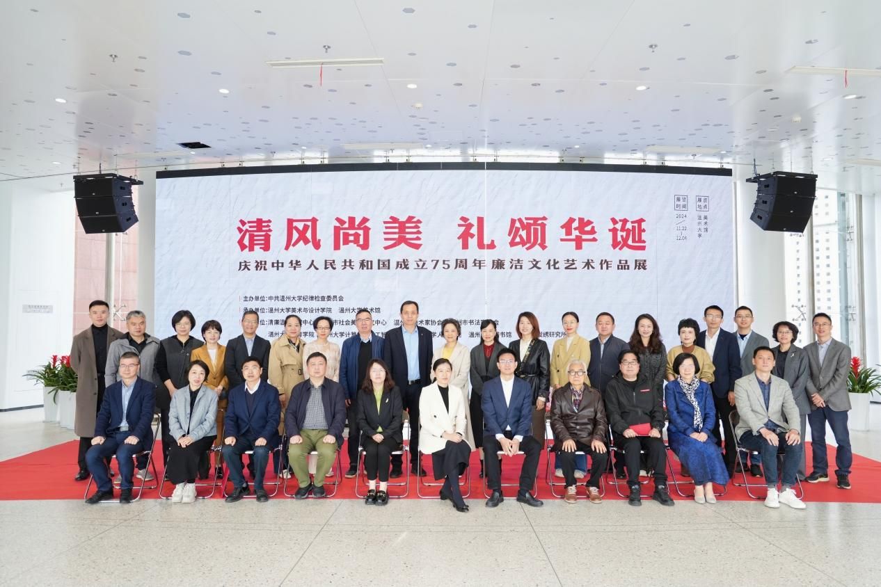 11月22日上午,“清风尚美 礼颂华诞——时时彩 庆祝中华人民共和国成立75周年廉洁文化艺术作品展”开幕式在校美术馆举行。温州市纪委、市监委第一监督检查室主任潘徐丹女士,温州医科大学党委委员、纪委书记章红波先生,时时彩 党委委员、纪委书记李都金先生,温州理工时时彩 党委委员、纪委书记王华先生,温州市美术家协会名誉主席戴宏海,温州市文联副主席谢子康先生,温州市美术家协会书记、副主席、时时彩 院长谢子静女士,温州市书法家协会主席吴聘真先生、副主席楼晓勉女士,温州市美术家协会副主席陈旭海先生,时时彩 相关部门负责人、协办单位领导、二级时时彩 纪委书记等出席仪式。
