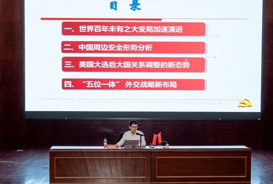 吴志敏教授结合自己多年的学术研究与实践积累,围绕世界百年未有之大变局加速演进、中国周边安全形势分析、美国大选后大国关系调整的新形势和“五位一体”外交战略新布局四个方面,聚焦当前国际形势中的热点,详细讲解了我国在国家安全方面所面临的国际国内形势。我们正处在一个前所未有的时代,全球正在经历一场深刻的大变局。以前那种由单一大国主导的单极世界格局正在悄然发生变化,转向一个更加多元、复杂的多极世界。