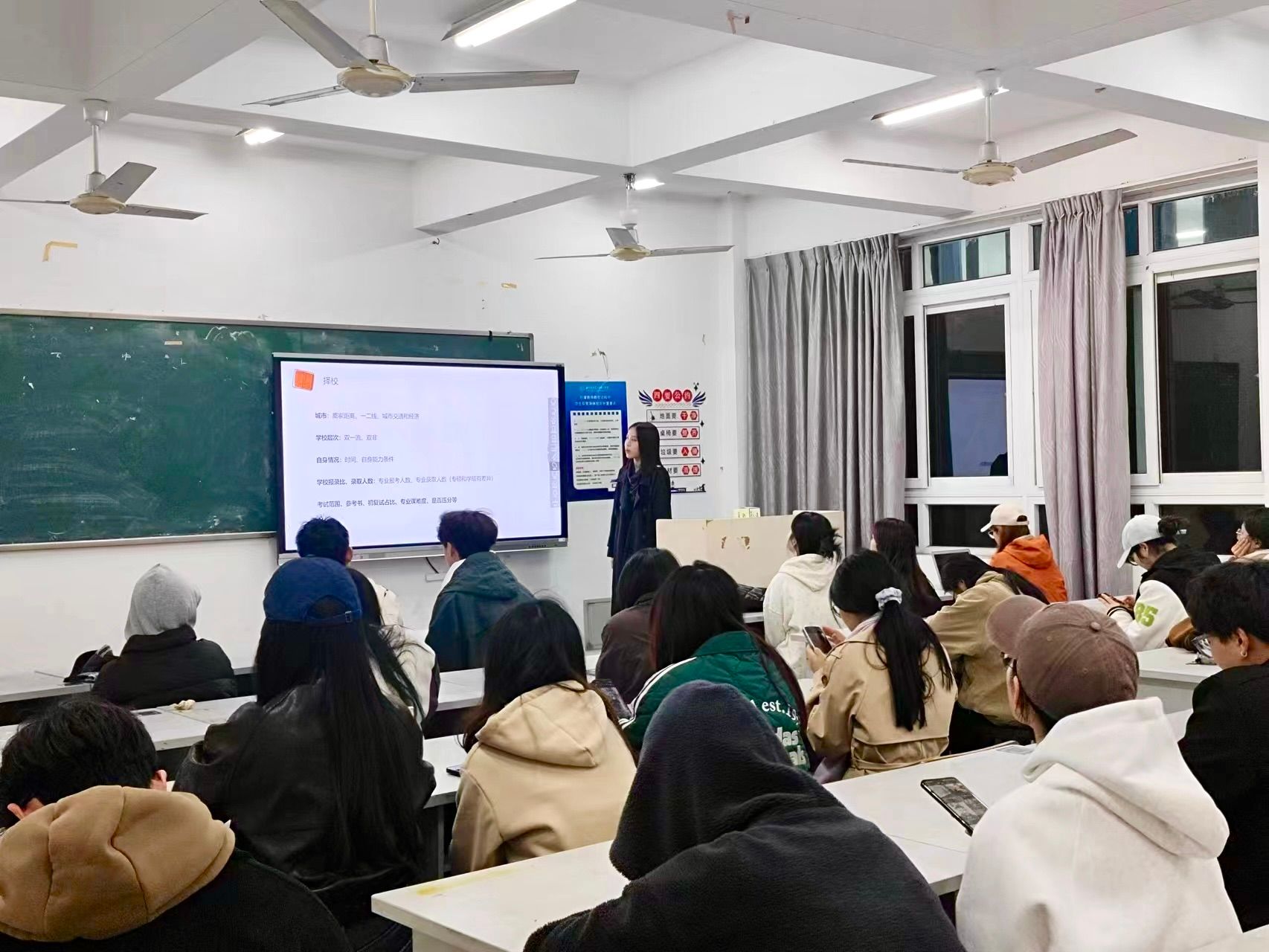 2024年11月24日,24研究生2班的杨晓凤同学进行了考研经验分享。杨晓凤同学提醒大家要综合考虑报考院校的层次和报录比,全面评估自身的学术基础、职业规划和兴趣,确保所选院校和专业既符合个人长远发展目标,又能提供适宜的成长环境。这也使同学们充分认识到考研不仅是一次知识的试炼,更是自我的探索与成长,唯有精准规划、稳扎稳打,方能在考研之路上行稳致远,达到理想目标。