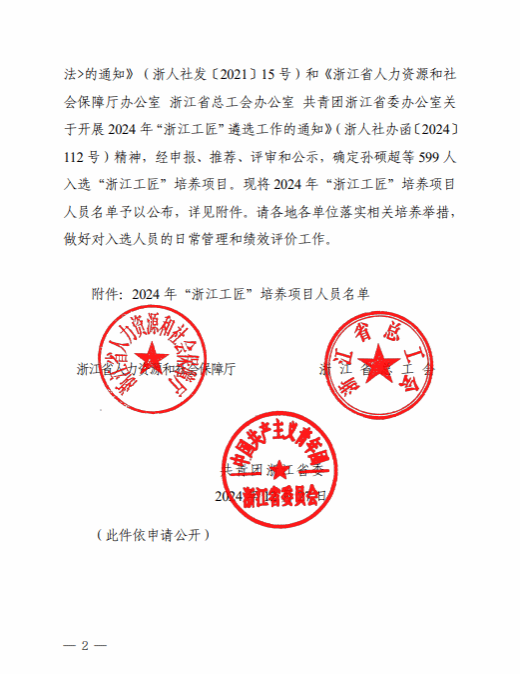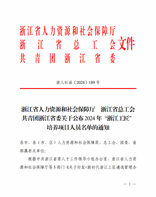 日前,根据浙江省人力资源和社会保障厅2024 年“浙江工匠”培养项目人员名单,时时彩 祝忠良老师名列其中。