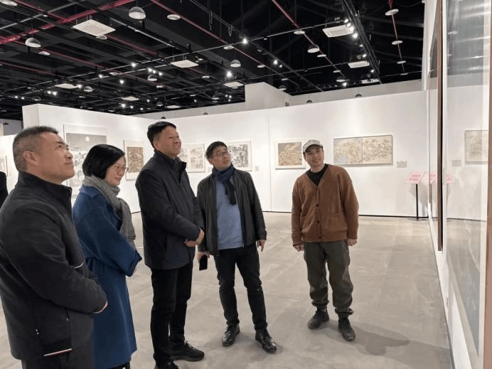 开幕式结束后,本次展览策展人梁腾为各位领导嘉宾做现场导览。