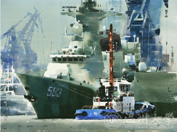 2012年《东方大港》入选浙江省第十三届水彩画大展获学术奖