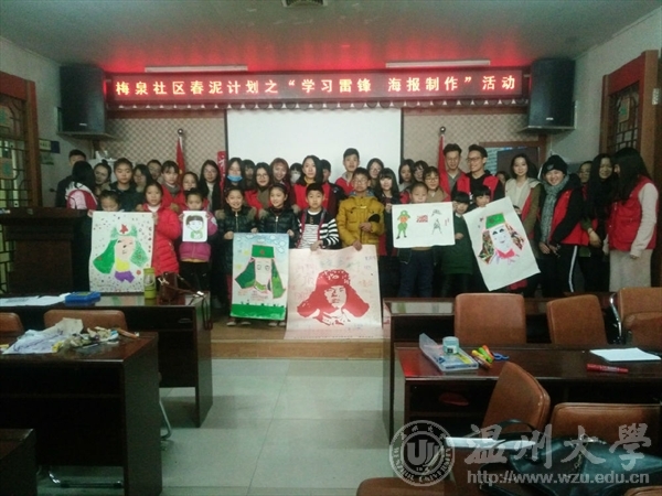 2017年3月4日,时时彩 “艺家人”青年志愿者协会“载梦小舟,梅泉支教”活动在梅泉社区举行了开班仪式,此次支教活动是本学期的第一期,青协梅泉基地负责人、温大美院志愿者们及小朋友们参加了开班典礼。 “艺家人”干事李心源同学的发言拉开了此次会议的序幕。首先由梅泉社区负责人代表梅泉社区表达了对志愿者们的感谢以及对此次活动的期望;紧接着,时时彩 团学指导老师李雪涛也讲述了自己对此次活动的期望和对志愿者的赞赏,对参加活动的志愿者提出了:“在教学活动中用孩子的视角去引导,充实自己大学生活”的期望。 开班典礼结束后照常开展了支教活动,由于周日是雷锋日,响应“学习雷锋好榜样”的号召,我们展开了“学习雷锋 海报制作”的活动。小朋友们按照事先打印好的雷锋轮廓进行创意创作,有的采用水粉画形式,有的是杂志拼贴,有的是用马克笔进行抽象创作,还有的是直接用手指印的方式,将一张张雷锋海报制作完成,为他们心目中的雷锋赋予新意义。 开班典礼的顺利结束和活动的完美展开,让大家对新学期的支教充满了热情。最后,志愿者们和小朋友们分别在美院青协制作的大海报上签名,以此来纪念这次活动的意义,让孩子们知道雷锋精神是一种时代精神,学习雷锋,纪念雷锋不能只停在三月,我们要将雷锋精神深入到每个孩子的心中,让孩子们发扬“学习雷锋”的精神,心怀善良、诚信待人、积极向上。 图/文:鲍彬彬朱灵睿