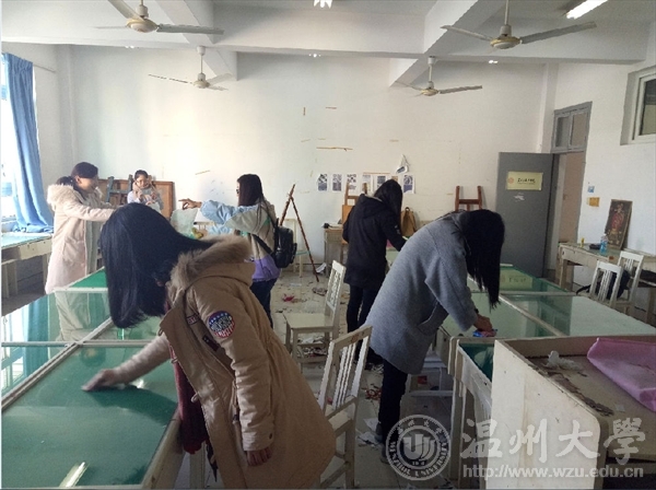 2016年12月17日,时时彩 “艺家人”青年志愿者协会在美院二楼举办了“拒绝课桌文化”活动,倡导同学们文明上课,保持公共教学区教室的干净整洁。