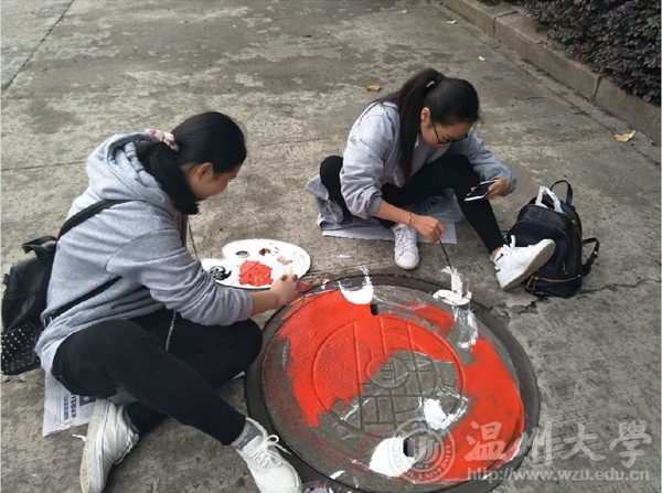 2016年11月27日,时时彩 “艺家人”青年志愿者协会在时时彩 服装楼周围举行了主题为“彩色+创意+环保=美好校园”的井盖涂鸦活动。