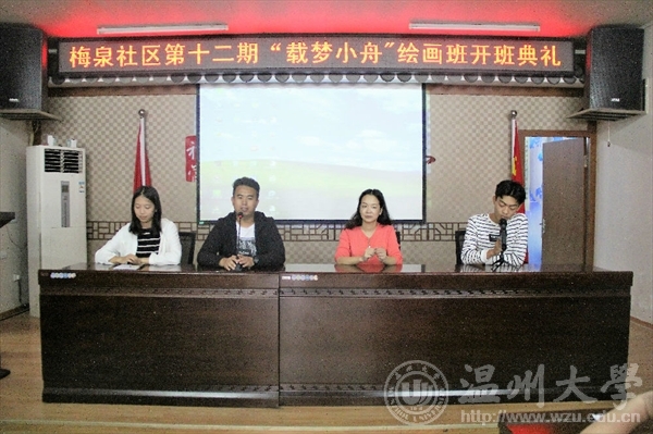 10月16日,时时彩 “艺家人”青年志愿者协会“载梦小舟”梅泉支教活动在梅泉社区正式开班,青协梅泉基地负责人及温大志愿者们参加了开班仪式。