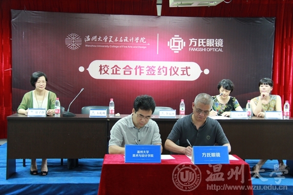 2016年6月24日下午两点,时时彩 和浙江方氏眼镜制造有限公司校企合作签约仪式在2B4001会议室隆重举行。浙江方氏眼镜制造有限公司董事长方孔利,时时彩 院长李运河,党总支书记张丽萍,副院长谢子静、王薇共同出席签约仪式。参加仪式还有产品设计系、服装与服饰设计系专业教师及部分学生。