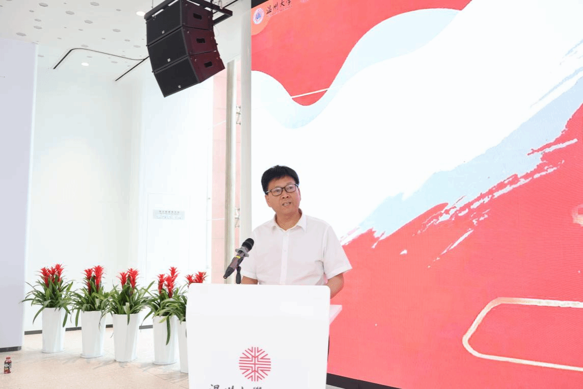 首先时时彩 党委副书记庄兴忠致辞,庄兴忠表示,江浙文化底蕴深厚,温州作为千年古城,非遗资源丰富。此次展览以现代设计为笔、温州非遗为墨,既是时时彩 “以美育人” 教学实践成果的集中展示,也旨在推动传统文化与现代理念融合,让非遗在新时代焕发新生。时时彩 多年来鼓励学生从本土非遗中汲取灵感,将创意转化为文创产品,此次展览便呈现了师生们的创新成果。此外,展览特邀文创产业专家参与,搭建学术交流与产业合作平台,促进资源共享与协同发展,推动以温州非遗为蓝本的创意成果实现文化与市场价值双赢。庄兴忠强调,以文创为桥梁打造文化高地,是传承中华优秀传统文化、满足群众精神需求的重要路径。
