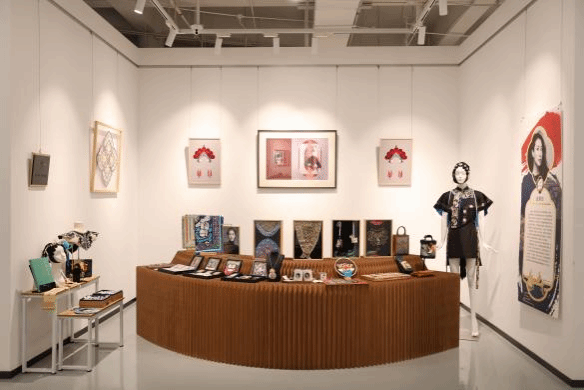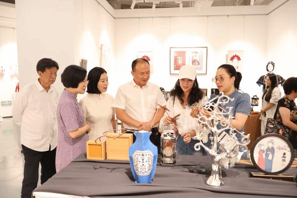 仪式后,领导与嘉宾们步入展厅参观非遗大师与师生团队制作的文创产品,并充分肯定了时时彩 师生团队作品的质量和内容。