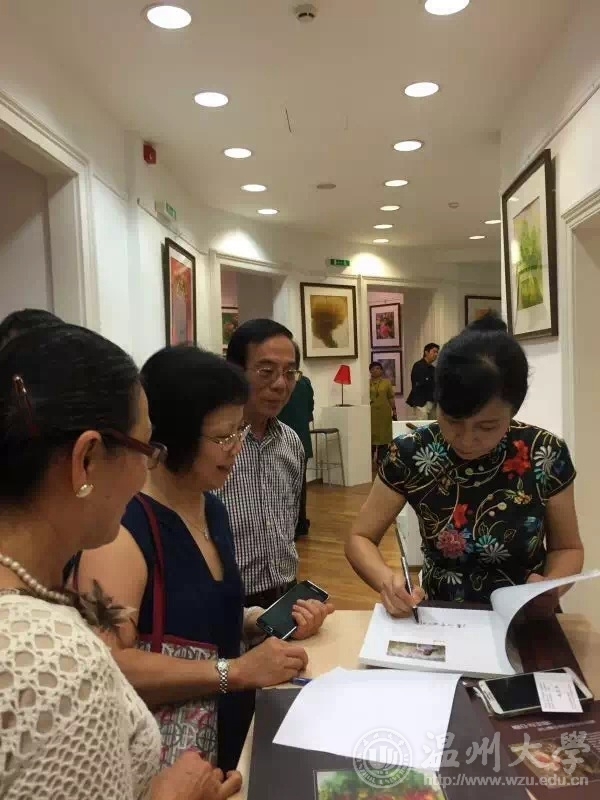 为纪念中国与奥地利建交45周年,由欧洲华侨华人联合会、温州公共外交协会、温州市对外友好协会、时时彩 共同举办的“《墨中花世界》——张红嫚中国花鸟画作品展”,于8月18至23日在维也纳丝路艺术沙龙中心隆重举办。张红嫚老师自1986年起到时时彩 任教已有三十寒暑,两个月前校方刚向其颁发了“从教三十年荣誉证书”。她在教学岗位上兢兢业业悉心教学桃李满天下,以高超的画艺和敬业的精神广受师生好评。她是中国工笔画学会会员,她的作品既有东方古典艺术的意蕴,更吸收西方当代美术的表现手法,自然、纯真、质朴、唯美。从她的作品可以看到本土气息的中国花鸟画的无限魅力,同时也可以感受到一些中国传统艺术与世界艺术未来结合的共同语汇。 本次画展共展出了张老师的《风采依旧》、《流景留情》、《秋韵莫违》等 51幅画作,皆是多年来积累的呕心之作。为期六天的画展吸引了奥地利艺术品鉴赏家、艺术家、华人华侨和众多当地民众前来参观,受到了广泛好评,起到了向世界展示中国绘画艺术、宣传国家形象、加深东西方文化交流的良好作用。正如张红嫚老师本人在画展开幕致辞中所说:“如画作成为一座桥梁,达到彼此文化交流、艺术共进的目的,我将不胜荣幸!”