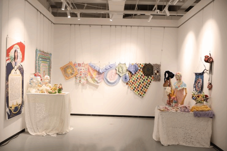 陈明艳教授领衔“爱拼”布艺工坊,寓意“爱拼才会赢”!团队以温情的布为媒介,用针尖描画艺术生活。本次展览呈现了多系列布艺贴画、丝带绣画以及风格多样的布艺包(牛仔包、民族包、几何拼布包等),琳琅满目,深受欢迎。工坊致力于融入中国地方风貌和传统非遗文化,精雕细琢布艺文创品,为中国的布艺繁荣贡献澎湃的“爱拼”力量。