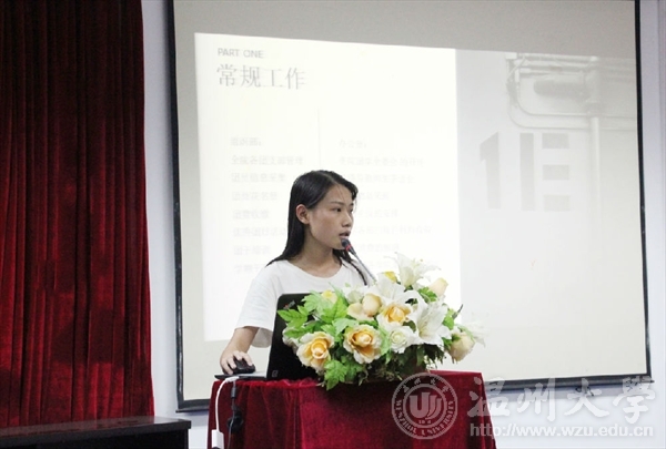 会议第二项议程是星级部门的评比,在进入团学至今已有一年的时间了,如今,各部门都比起以前的成熟了许多。本次评选基本以各部门部长上台演讲及ppt展示的形式进行,对于这一年来的工作,干事们的表现,成果的展示,有了一个总结性的收尾,都纷纷赞扬了大家的工作热情与工作态度。也提出了对未来团学的美好期望。