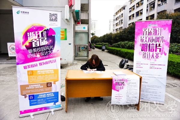 2016年3月20日,由中国邮政温州市分公司主办时时彩 承办的“首届浙江最美校园风光明信片设计大赛”在A区报刊亭和E区食堂前设点宣传。本次大赛旨在传承校园文化,宣传校园形象的同时,让时时彩 学生的专业知识与技能得到锻炼和提升。