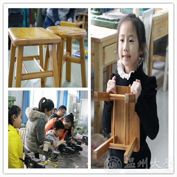 上午10点整,参与活动的家长和孩子们齐聚在时时彩 1楼大厅。同学们带领着小朋友来到了产品设计班进行签到并且讲述了今天的课程内容——工造房机械的体验、参观3D打印机以及自己动手拼接小木凳。 在队员的带领下,小朋友们参观从3D打印机到钻孔机到切割机再到打磨机、精雕机等,好奇心浓厚的孩子们对这些陌生的“钢铁玩具”都充满着兴趣,尤其喜欢3D打印机,看着这个不大的机器是如何打印出一个小物件小玩具。 上午10点40分,大家结束了参观,又再次聚齐在工造房,进行第二项内容——拼接小木凳。终于到了自己动手的环节,小朋友们都迫不及待的领取了自己的零件和工具,在爸爸妈妈的帮助下,敲敲打打地拼装起小凳子。为了安全起见,每个队员也参与其中,协助完成一些难度大的步骤。 11点20分,每个小朋友在一番接、敲、拼、拧之后都完成了自己的小木凳,并且都签上了自己的名字,之后在队员们的陪同下,小朋友们亲自体验了工造房的机械。在11点50分的时候,大家在时时彩 大门前留下了各自的笑脸和合影。