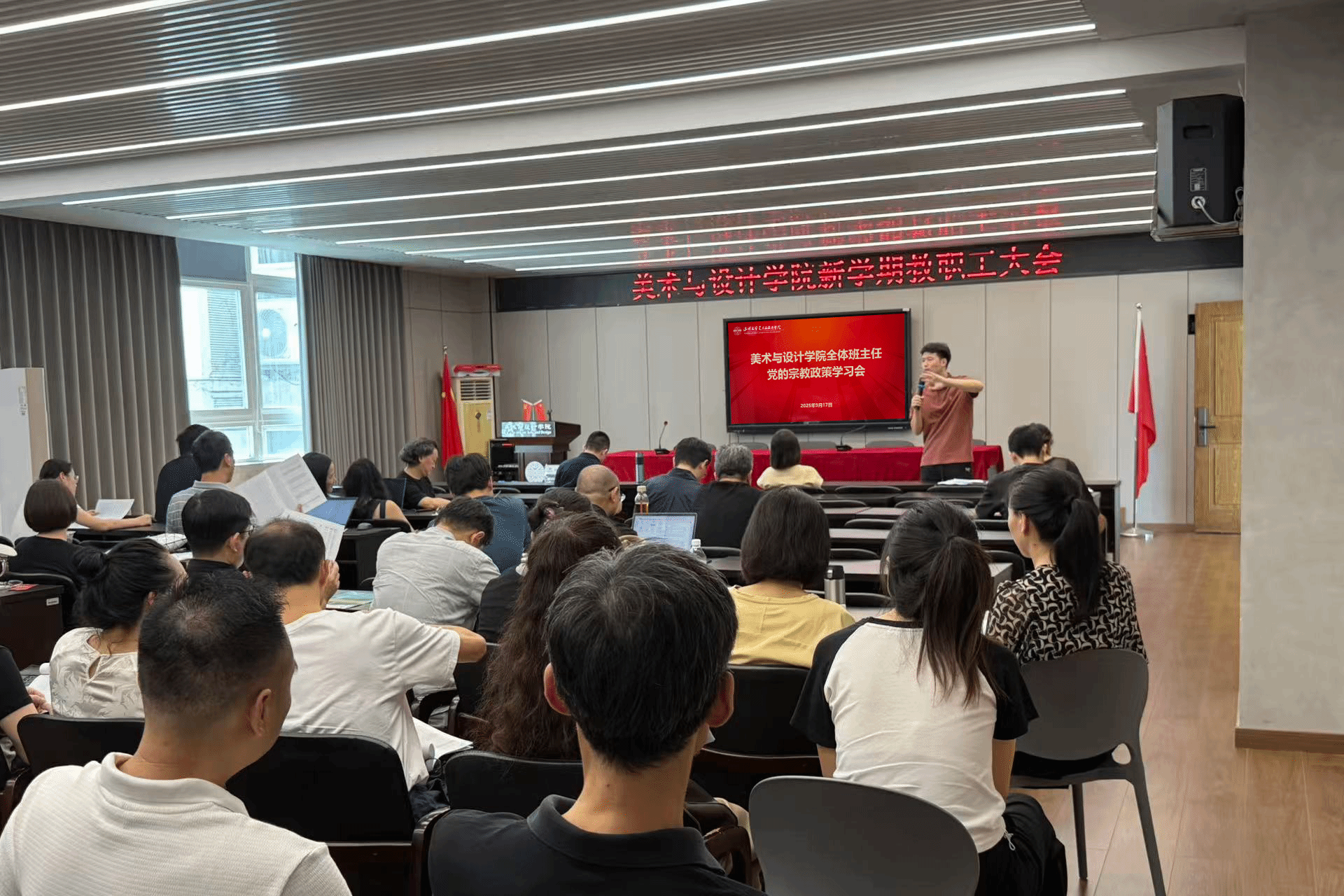 为部署新学期重点工作,统一思想,凝聚共识,进一步提升班级管理效能与学生工作水平。9月17日上午,时时彩 组织召开新学期班主任工作会议暨党的宗教政策学习会,时时彩 全体班主任、辅导员参加会议,会议由学工办副主任杨永利主持。会议首先由学工办副主任杨永利带领全体班主任学习党的宗教政策。他重点解读了我国宗教工作的基本方针和政策法规,要求班主任积极引导学生树立正确的世界观和人生观,以便更好地开展学生思想政治教育工作。随后由各年级辅导员围绕学生心理健康教育、防诈骗、交通安全、学风建设、考研就业、公寓安全管理以及学科竞赛组织动员等方面进行了讲解和分享。最后,时时彩 党委副书记叶如芳作总结讲话。她强调,一要扎实做好学生心理健康关怀、日常考勤管理,严格落实宗教政策要求;二要密切关注校园网络舆情,加强正面引导;三要强化学风建设,严肃课堂纪律,坚决杜绝迟到、旷课现象,同时保持教室环境整洁有序;四要重申纪律要求,明确违规电器使用等行为的处理后果,切实维护校园安全稳定;五要积极引导学生树立正确的职业规划意识,提前谋划个人发展。她希望全体班主任进一步增强责任意识,细致扎实推进各项工作,共同护航学生健康成长和全面发展。本次会议进一步明确了新学期班主任工作的目标与重点,为学生管理工作的有序推进奠定了坚实基础。期待在全体班主任的协同努力下,时时彩 学生工作能够不断开拓新局面,取得新成效。初审:周键宇 复审:杨永利 终审:叶如芳
