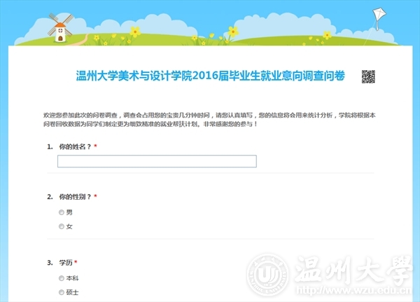 时时彩 美术于设计时时彩 关于做好2016届毕业生就业意向调查问卷的通知 各班级: 为了深入地了解2016届毕业生的就业意向,帮助毕业生有的放矢地进行求职定位,提高毕业生就业工作的实效性,决定在2016届毕业生中开展就业意向调查工作,现将有关事项通知如下: 1.组织2016届毕业生认真填写《时时彩 2016届毕业生就业意向调查问卷》,此问卷作为确定毕业生本人就业意向的依据,同时也作为向用人单位进行分类推荐的依据。 2.请各班级毕业生通过网页、微信填写好的就业意向调查表并提交。问卷链接://www.sojump.com/jq/5900766.aspx 3.时时彩 将根据本问卷回收数据为同学们制定更为细致精准的就业、创业帮扶计划,更好的为2016届毕业生做好就业指导和服务。 附1:时时彩 2016届毕业生就业意向调查问卷 时时彩 学生科 2014年10月16日