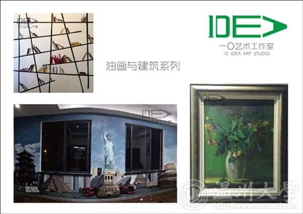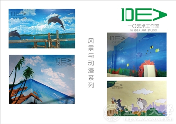 团队名称:一〇艺术工作室 负责人:吕舒宁 联系电话:18367810822 工作室简介 “一〇”艺术工作室成立于2013年,由时时彩 油画、国画以及环艺专业的几位热血青年组成。以墙绘艺术创作,定做油画、国画为核心。秉承“一”是最简单的开始,“〇”是无限大的创意。我们只为用色彩点亮客户的艺术生活,为此我们以初心——永不止步。 工作室成员 吕舒宁、蒋成杰、郭龙、朱雄辉、陈情、林瑞恬、黄磊、顾天成、陈伟伟 经营业务范围 1.油画国画风景、人物类定做 2.室内室外墙体艺术彩绘 3.绘画作品临摹临摹(包括油画、国画、书法等) 4.平面设计 作品展示 创业感想 我们是大学生中的沧海一粟,我们曾彷徨,为不定的未来着急。绘画从来都是高贵的玩具,年轻的我们还拿不起。某个契机,看到了专业的缩影——墙绘。我们是专业的画手,我们有最新颖的想法,我们愿用热血呈现精彩的视觉享受。 细看生活不难发现随着经济的发展,人们开始追求上层建筑的享受,而绘画艺术必将广泛的进入我们的生活,已经成为一种生活的方式。我们知道翅膀硬的老鹰才能飞的更高,所以我们将明确目标,实事求是,执着追求,最终可以让所有人的生活变得更加美好。