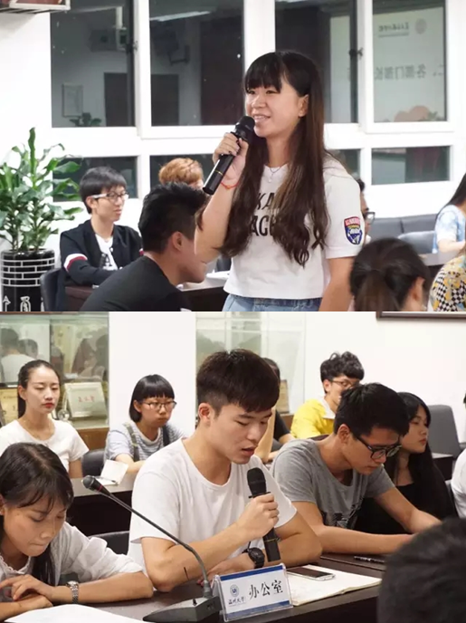 第二个流程:各部门部长讲话。各部长重点讲述接下来的工作安排,并指明未来的工作方向。美院团学在组织领导下有序运转,整个时时彩 的工作与活动也都来自于这个核心队伍,循序渐进地开展着。团委学生会是整个时时彩 的生命力,展现了当代大学生组织的完美配合。