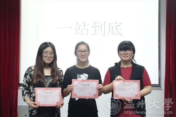 为提高广大同学的艺术素养,营造良好的学习氛围,5月24日下午,时时彩 团委学生会在2B4001举办了时时彩 第二届“一站到底”知识竞答比赛。时时彩 团委学生会团副书记金李斌、团委学生会副主席叶佳颖、素质拓展部和学术科技部的部长出席了本次活动。 开始之前,主持人组织同学们为各组加油,壮大气势。比赛正式开始,各位选手首先做自我介绍,满怀斗志地说出自己的决赛宣言,台下的观众更是给予选手们最大的支持与鼓励。比赛共分为两轮,第一轮为团体内部的战神选拔,各组由抽到擂主的同学选择组内的一名同学做挑战者,组员之间按照编号轮流答题。第一轮结束,台上每组剩下一个战神——他们就是今晚的战神团;第二轮为战神之间的角逐,采用答题板的方式进行角逐,经过两个半小时的层层筛选和智力对决,最终决出“终极战神”。此次知识竞赛在热烈的氛围和同学们的喝彩声中落下帷幕,一场智慧的交锋,一次思想的碰撞,让更多的人认识到知识海洋是无穷无尽的,学习之路也是永无止境的。
